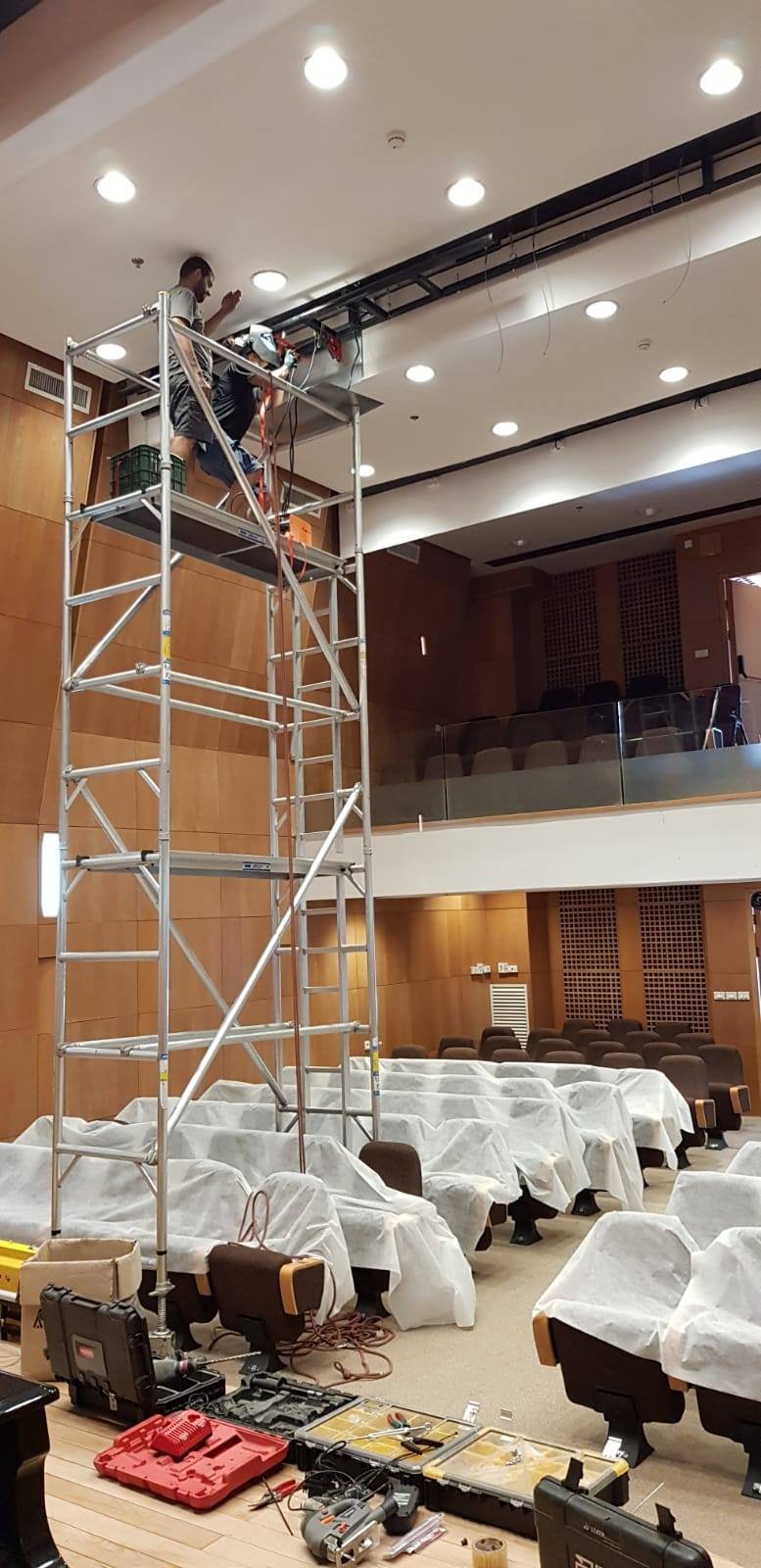 התקנת מערכת תאורה עבור אולם מופעים. *ביצענו כקבלני משנה עבור א.ב אלקטרוניקה
