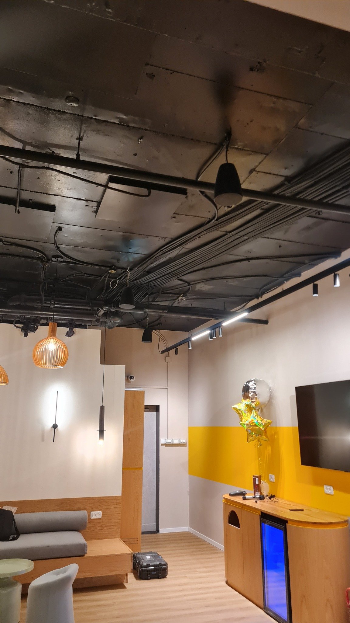 התקנו מערכת רמקולים שמורכבת מ3 איזורים עם זוג סאבים , חלק מהרמקולים תלויים וחלק מהרמקולים שקועים.
