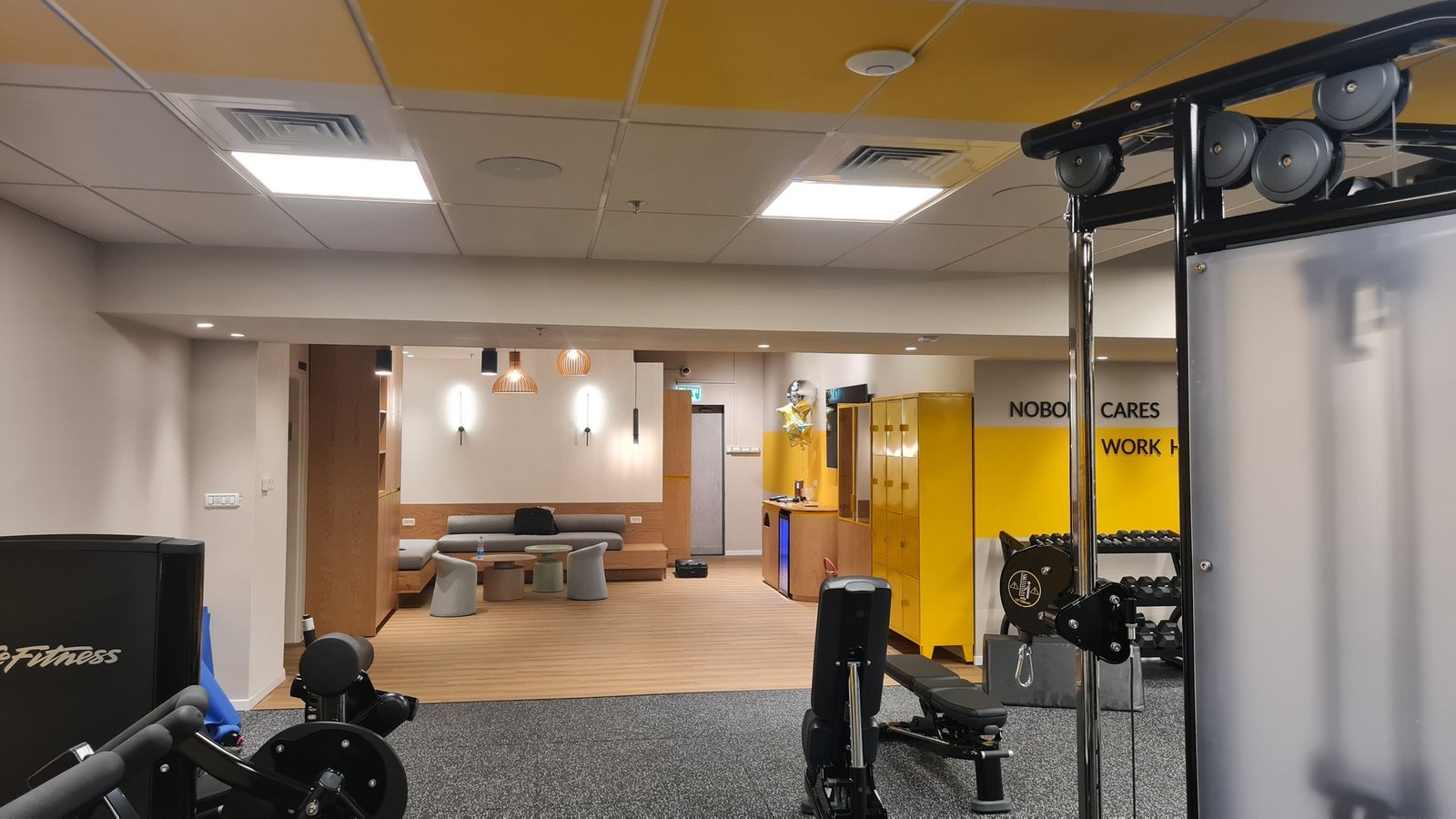 הצענו ללקוח לתלות את הסאבים כמה שיותר צמוד לתקרה כדי שיהיה פיזור של הסאונד ככה שהמתאמן שנמצא הכי קרוב לסאב לא ייקבל המון רעש ממנו ביחס למתאמן שנמצא רחוק מהסאב.