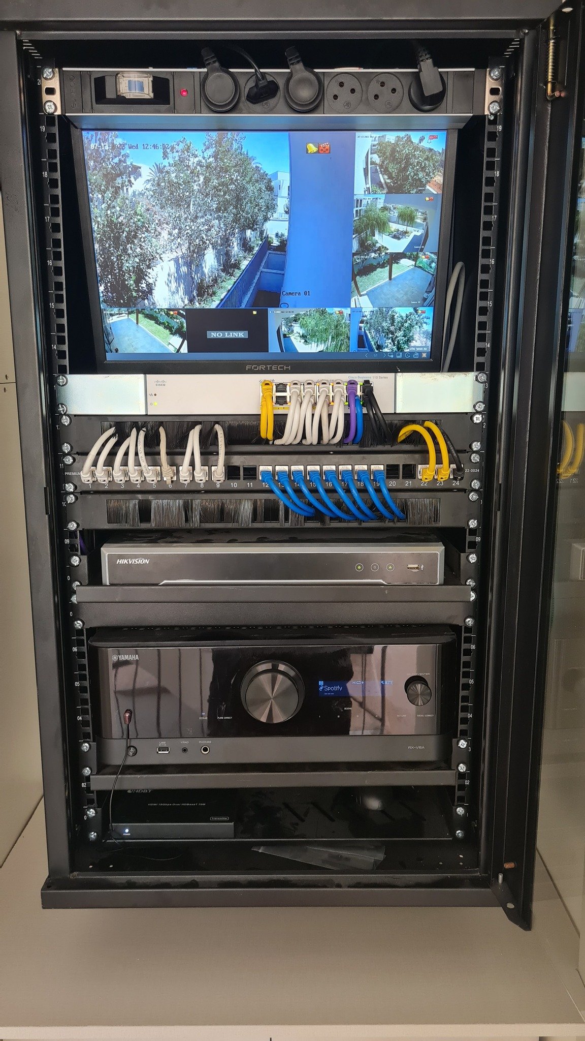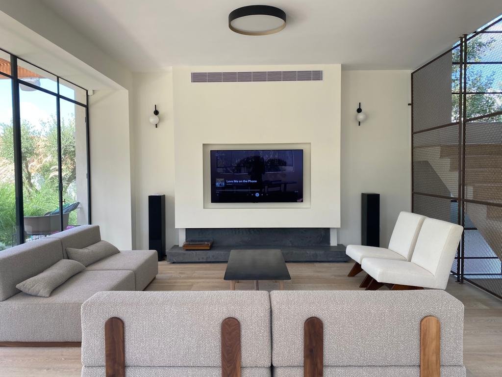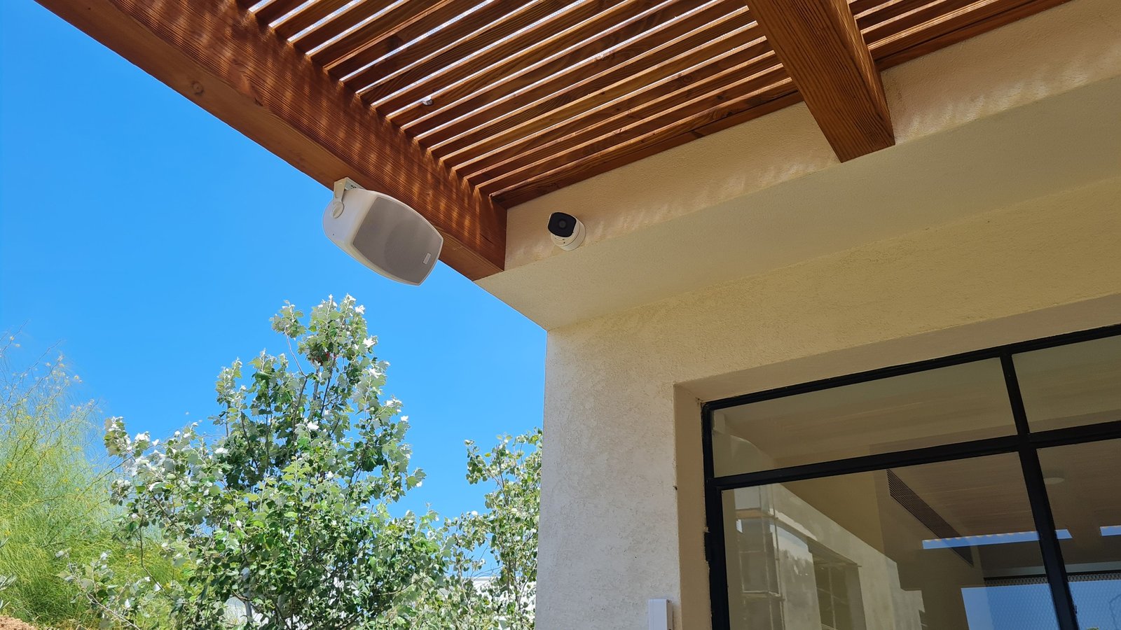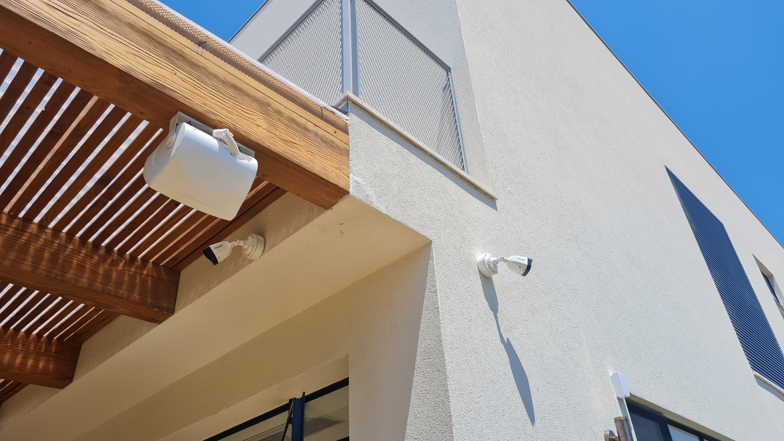 התקנת מערכת רמקולים, מצלמות אבטחה ורשת אלחוטית לבית פרטי.
